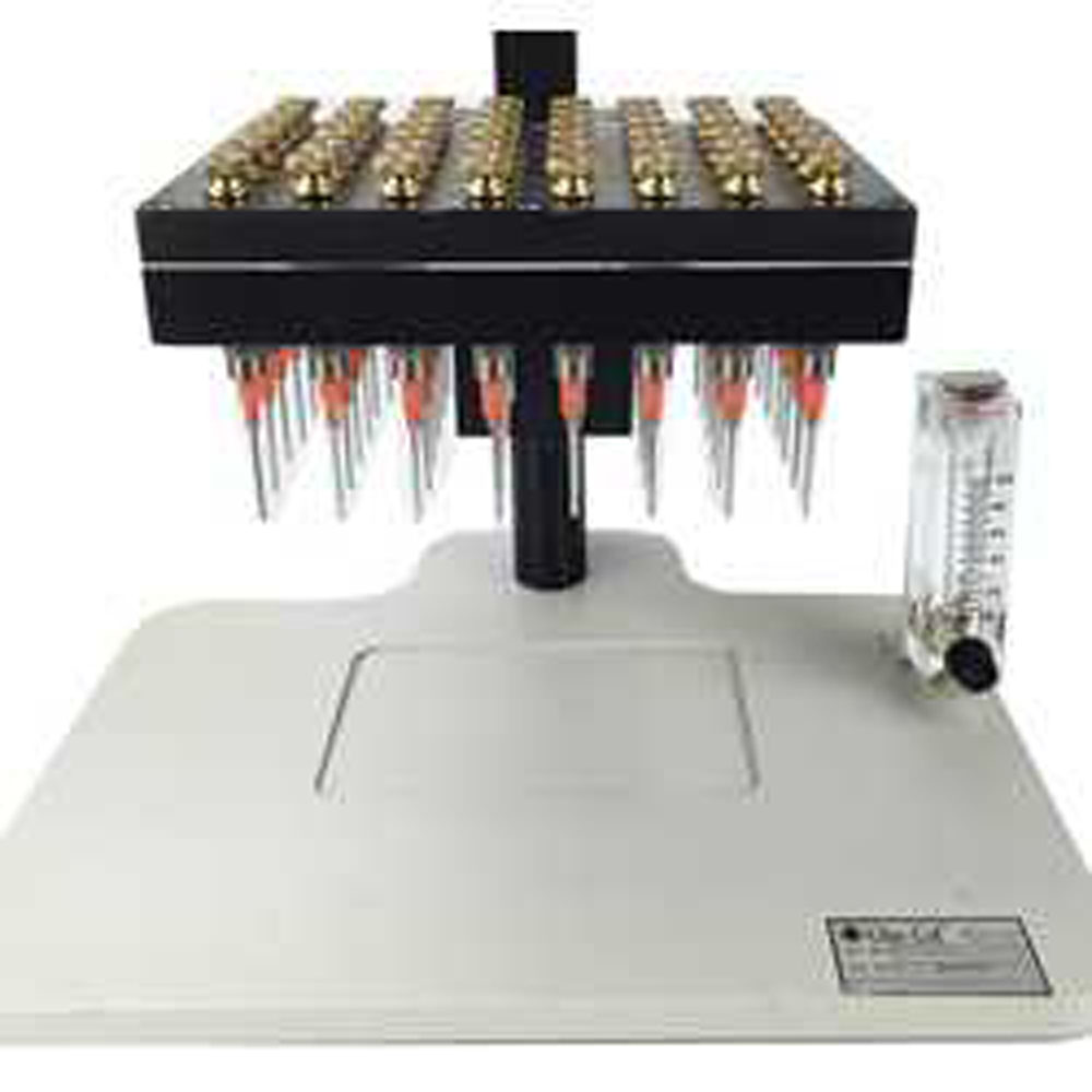 – Easy open and close of any individual gas port and allows individual flow adjustments. If you do not need to use all gas ports, shut down the specific ports easily: you will save nitrogen gas and avoid contamination from dust stirred up by unused ports. – Complete equal flow rates from all ports (regardless how many ports are open or closed), so all your samples are blown down simultaneously and avoid overheating of sensitive compounds in early-dried up samples. – Automatic holding of needle positions with a high quality jacking stand. Easily adjust the height of needle positions. Easy cleaning of needles, no chance of blowing away your samples due to nitrogen outbursts. – Much lower cost than other evaporators on the market.